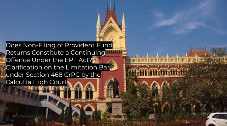 The Calcutta High Court holds that non-filing of returns under the Employees’ Provident Fund Scheme is not a continuing offence, reaffirms that prosecution is barred by limitation under Section 468 of the CrPC in such cases, and quashes related proceedings; this decision follows existing precedent and carries binding authority for subordinate courts. Summary Category […]