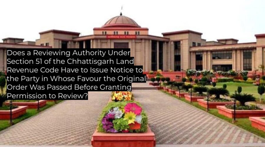 The High Court reaffirms that review of administrative orders under Section 51 of the Chhattisgarh Land Revenue Code requires mandatory issuance of notice and proper hearing to the affected party. This judgment follows binding Madhya Pradesh High Court Division Bench authority and is a binding precedent for all subordinate land revenue authorities in Chhattisgarh, impacting […]