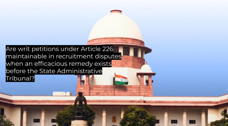 Are writ petitions under Article 226 maintainable in recruitment disputes when an efficacious remedy exists before the State Administrative Tribunal?