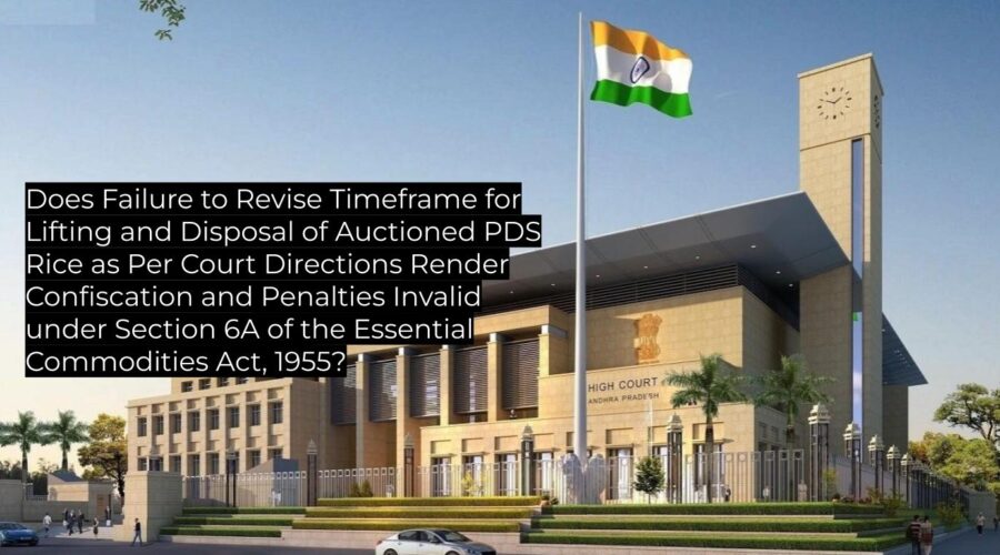 The High Court of Andhra Pradesh set aside confiscation and penalty orders issued for delayed disposal of auctioned PDS rice, holding that the respondent authority’s failure to revise the time schedule in accordance with an earlier High Court order vitiated subsequent penal actions. This decision is expressly restricted to its unique facts and is not […]