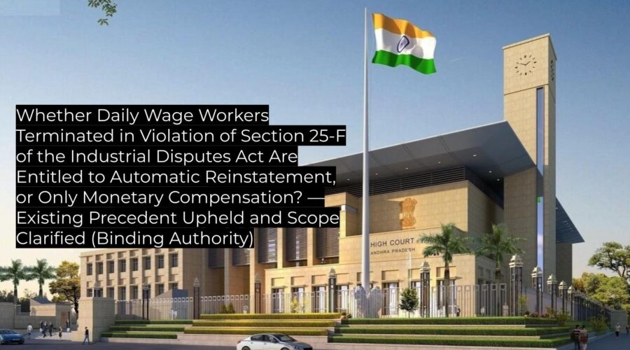 Whether Daily Wage Workers Terminated in Violation of Section 25-F of the Industrial Disputes Act Are Entitled to Automatic Reinstatement, or Only Monetary Compensation? — Existing Precedent Upheld and Scope Clarified (Binding Authority)