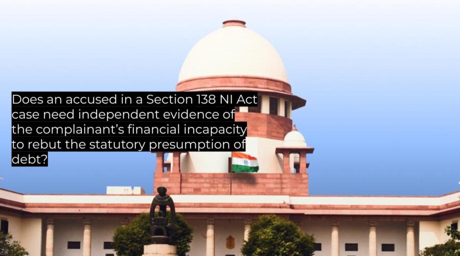 Does an accused in a Section 138 NI Act case need independent evidence of the complainant’s financial incapacity to rebut the statutory presumption of debt?