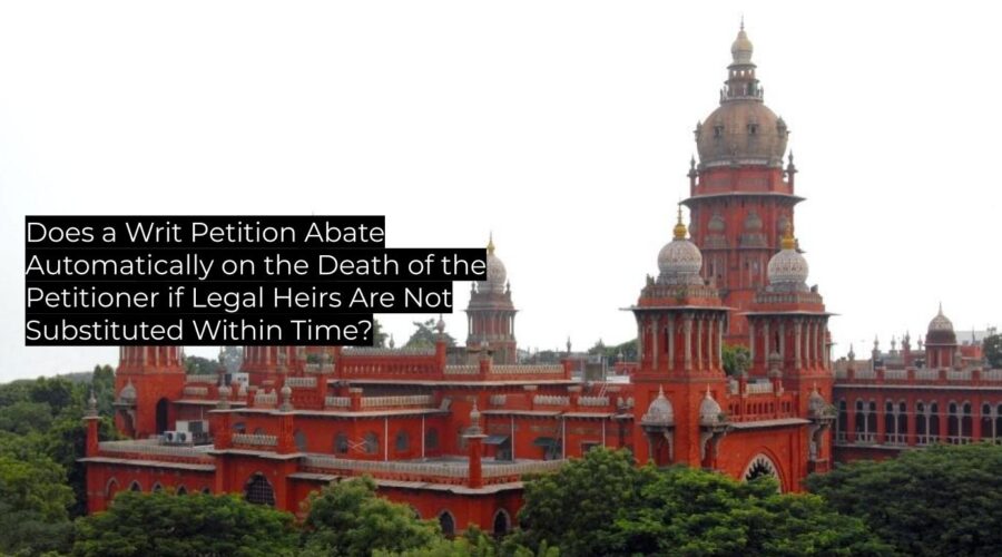 The Madras High Court reaffirmed that when a petitioner dies and steps are not taken to substitute legal heirs despite adjournments, the writ petition stands dismissed as abated. This preserves procedural discipline and is binding precedent for subordinate courts dealing with abatement in writ proceedings in Tamil Nadu and Puducherry. Summary Category Data CNR […]