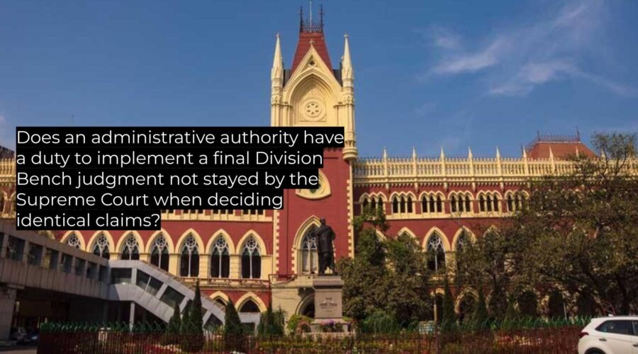 Does an administrative authority have a duty to implement a final Division Bench judgment not stayed by the Supreme Court when deciding identical claims?