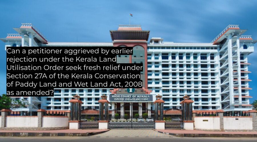 Can a petitioner aggrieved by earlier rejection under the Kerala Land Utilisation Order seek fresh relief under Section 27A of the Kerala Conservation of Paddy Land and Wet Land Act, 2008 as amended?