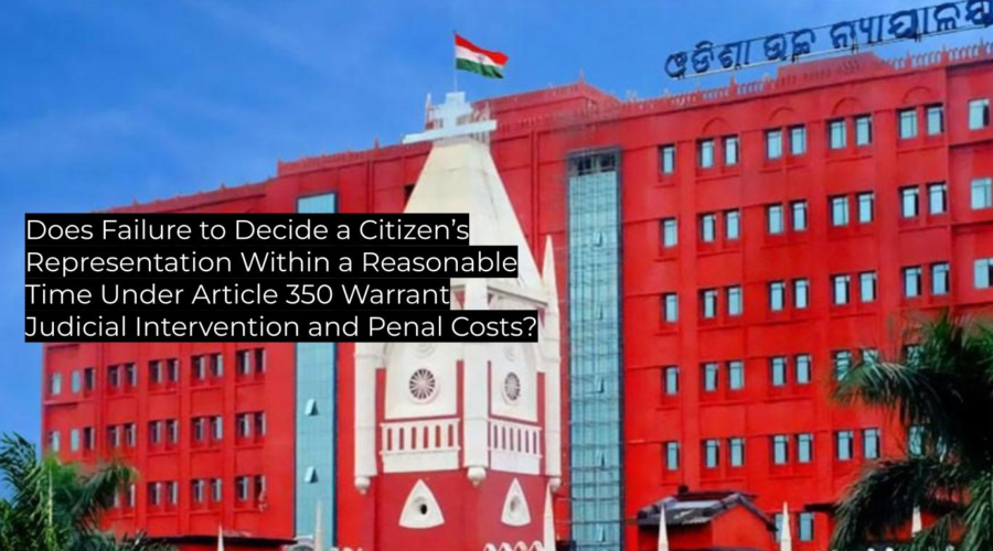 The Orissa High Court reaffirms the constitutional mandate under Article 350, directing time-bound disposal of grievances with personal penal cost for officials; serves as binding authority for petitioners seeking redressal of administrative delays. Summary Category Data Case Name WP(C)/22507/2025 of DIBYA CHANDRA DEHURY Vs STATE OF ODISHA CNR ODHC010565452025 Date of Registration 12-08-2025 Decision […]