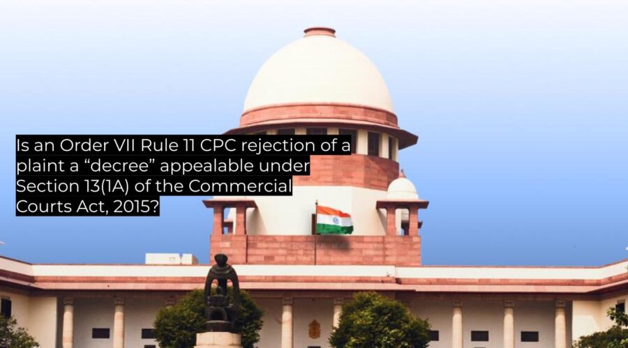 Is an Order VII Rule 11 CPC rejection of a plaint a “decree” appealable under Section 13(1A) of the Commercial Courts Act, 2015?