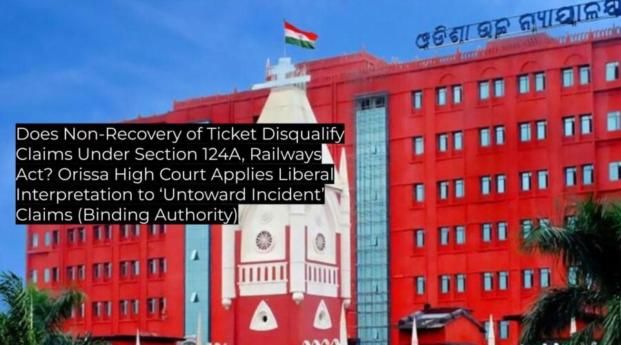 Does Non-Recovery of Ticket Disqualify Claims Under Section 124A, Railways Act? Orissa High Court Applies Liberal Interpretation to ‘Untoward Incident’ Claims (Binding Authority)
