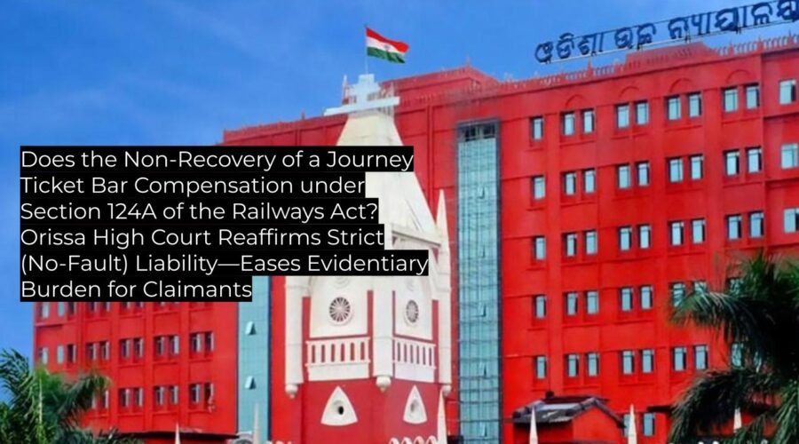 The Orissa High Court reaffirms that non-recovery of a train ticket does not bar compensation under Section 124A of the Railways Act when circumstantial and documentary evidence establish bona fide passengership and accidental fall. The judgment aligns with and applies Supreme Court precedents, notably Union of India v. Rina Devi and Prabhakaran Vijaya Kumar, reinforcing […]