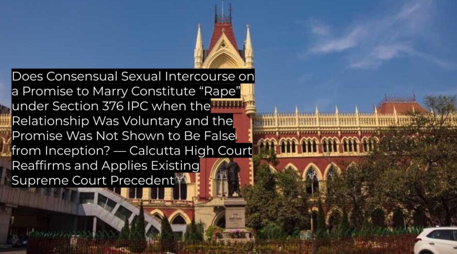 Does Consensual Sexual Intercourse on a Promise to Marry Constitute “Rape” under Section 376 IPC when the Relationship Was Voluntary and the Promise Was Not Shown to Be False from Inception? — Calcutta High Court Reaffirms and Applies Existing Supreme Court Precedent