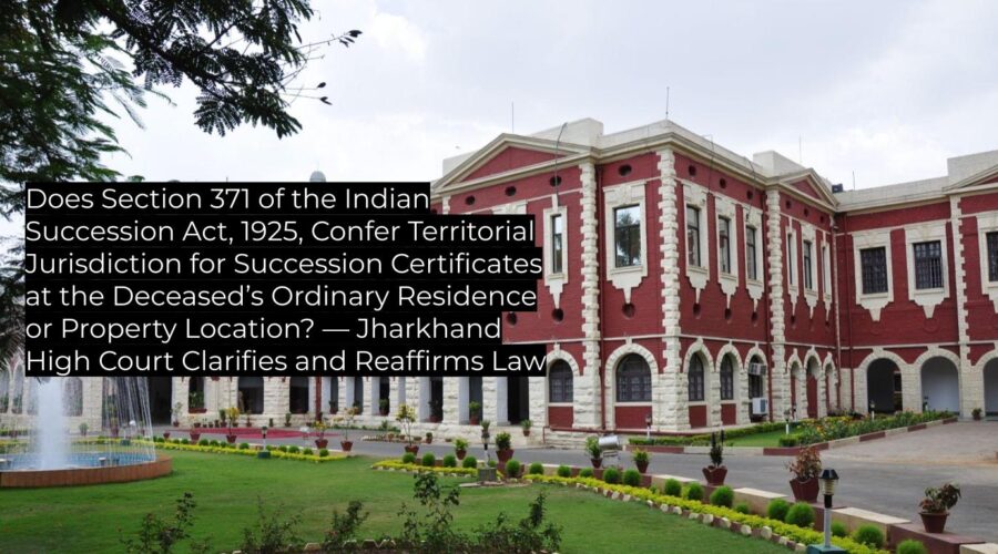 Does Section 371 of the Indian Succession Act, 1925, Confer Territorial Jurisdiction for Succession Certificates at the Deceased’s Ordinary Residence or Property Location? — Jharkhand High Court Clarifies and Reaffirms Law