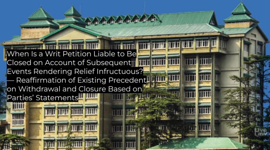 When Is a Writ Petition Liable to Be Closed on Account of Subsequent Events Rendering Relief Infructuous? — Reaffirmation of Existing Precedent on Withdrawal and Closure Based on Parties’ Statements