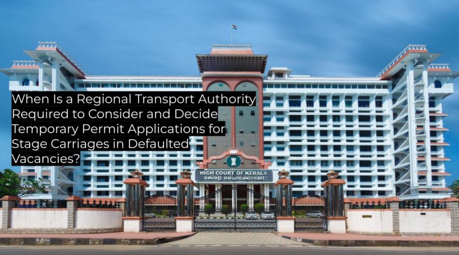 Kerala High Court reiterates that upon receipt of a temporary permit application to operate a stage carriage in a defaulted vacancy, the Regional Transport Authority must consider and decide the application expeditiously—without prejudice to the rights of the regular permit holder and any other better claimant. This judgment affirms existing precedent and serves as binding […]