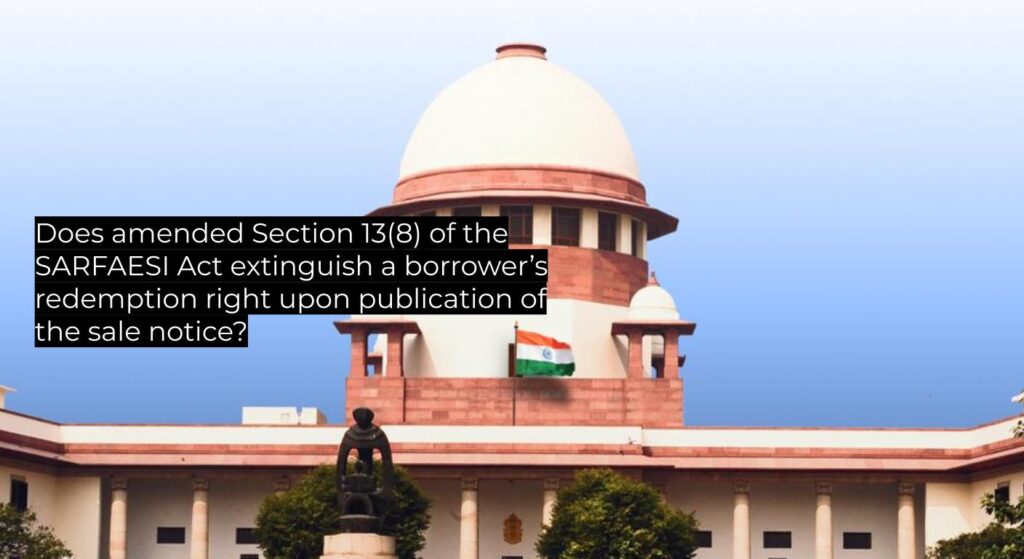 - Section 13(8) SARFAESI Act (as amended 1 Sept 2016): borrower’s redemption cut-off is “before the date of publication of notice” for any mode of transfer.