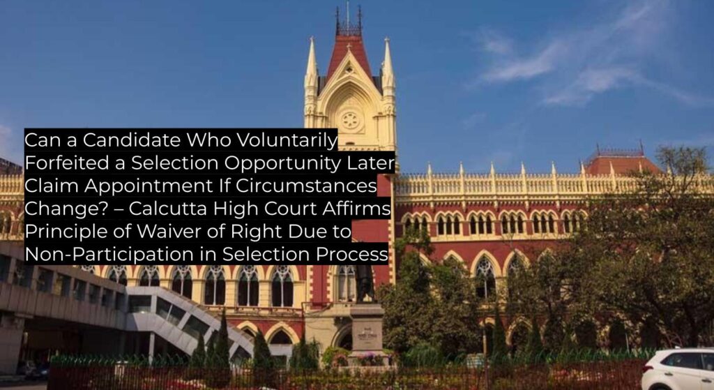 Can a Candidate Who Voluntarily Forfeited a Selection Opportunity Later Claim Appointment If Circumstances Change? – Calcutta High Court Affirms Principle of Waiver of Right Due to Non-Participation in Selection Process