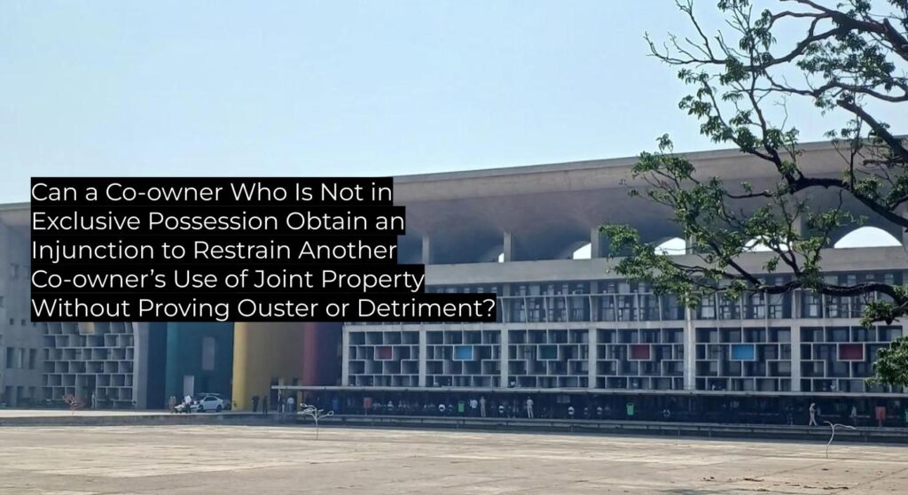 The judgment reiterates that absent ouster, prejudice, or detriment to a co-owner’s interest, a co-owner not in exclusive possession cannot obtain an injunction merely to prevent construction or alteration by another co-owner; the proper remedy is partition. This position upholds Full Bench and Division Bench precedents of the Punjab and Haryana High Court and is binding on all subordinate courts in the State.