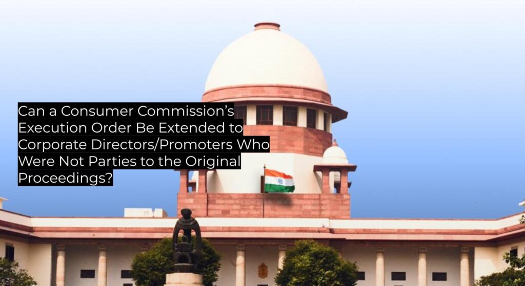 A flat-buyers association entered into agreements with a developer promising possession within 36 months. Possession was delayed, leading to two NCDRC complaints initially naming both the company and its directors/promoters. On January 25, 2018, the NCDRC confined the lis to the company alone. The company failed to comply with relief orders (possession or refund with interest), prompting execution applications. An insolvency moratorium on the company led NCDRC to stay execution sine die; the Supreme Court lifted that stay (January 17, 2024), allowing execution against directors/promoters. On revival, NCDRC dismissed execution against non-party directors for lack of adjudicated liability.