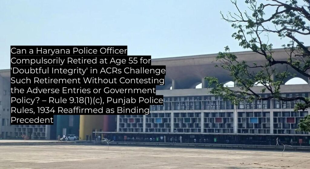 The petitioner, a member of the Haryana Police since 1989 and holding the post of EASI at the time of the petition, was compulsorily retired at age 55 via orders dated 25.07.2025 and 08.09.2025 under Rule 9.18(1)(c) of the Punjab Police Rules, 1934. The basis for retirement was that his integrity had been doubted in two ACRs during the periods 06.07.2016–10.10.2016 and 14.11.2016–31.03.2017. These adverse entries were influenced by his implication (and subsequent acquittal) in a 2015 criminal case under the Prevention of Corruption Act. No challenge was made to either the ACR entries or the government instructions dictating such retirements.