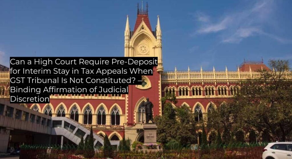 The Calcutta High Court confirms that, in the absence of a functioning GST tribunal, the High Court may validly require pre-deposit of a percentage of disputed tax as a condition for granting interim stay—affirming existing law and the Single Judge’s discretion. This decision is binding precedent for tax disputes in the jurisdiction and upholds established statutory requirements.