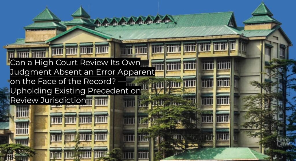 The High Court of Himachal Pradesh has reaffirmed that a review petition may be dismissed where no error apparent on the face of the record is found. This judgment upholds existing precedent on the narrow scope of review jurisdiction within the Code of Civil Procedure and serves as binding authority within the State, clarifying the threshold for maintainability of review petitions.