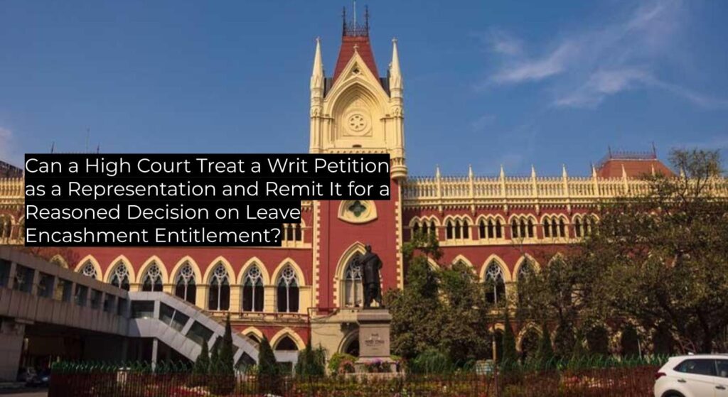 | Questions of Law | Whether a High Court can treat a writ petition under Article 226 as a representation and remit it to the competent authority for a reasoned decision on entitlement to leave encashment. |