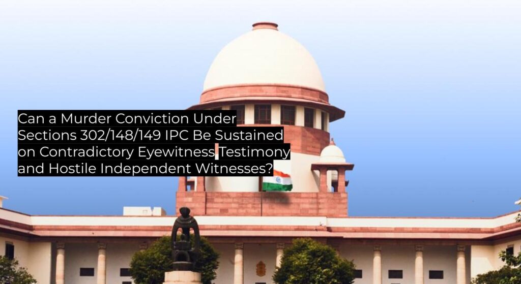 Questions of Law Whether conviction under Sections 302 read with 149 and 148 IPC can be sustained on the sole testimony of an interested witness with material contradictions and without independent corroboration.