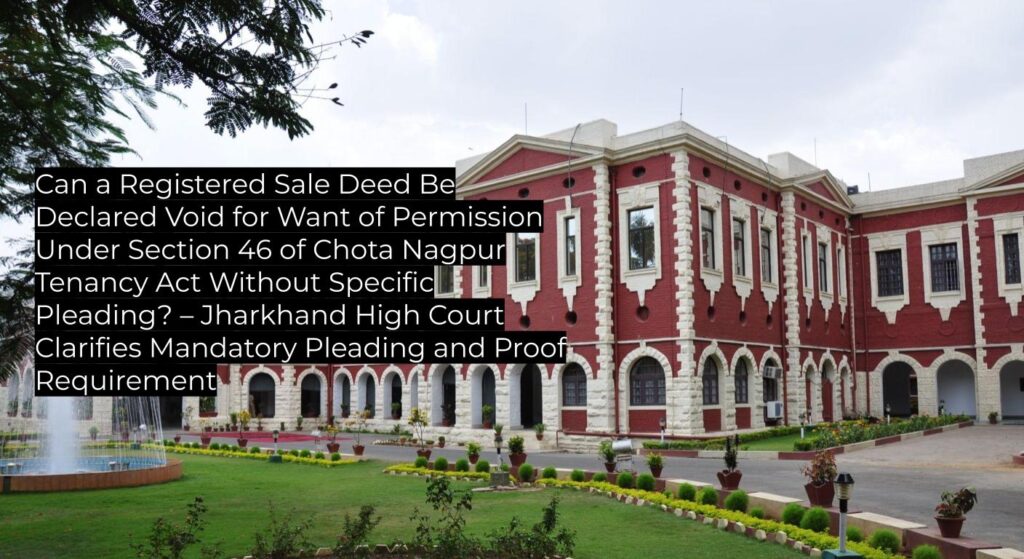 Can a Registered Sale Deed Be Declared Void for Want of Permission Under Section 46 of Chota Nagpur Tenancy Act Without Specific Pleading? – Jharkhand High Court Clarifies Mandatory Pleading and Proof Requirement