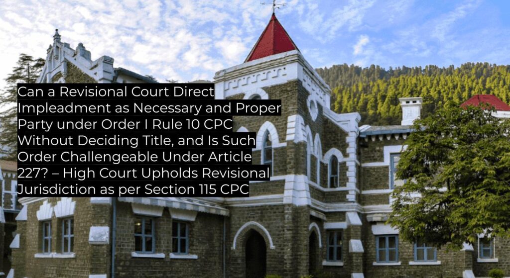 The High Court of Uttarakhand reaffirms that a revisional court may direct impleadment under Order I Rule 10 CPC to secure complete adjudication in partition suits, without adjudicating on disputed title, and such procedural orders—if passed with proper jurisdiction and reasoning—will not ordinarily be interfered with under Article 227. Judgment affirms existing precedent; binding on subordinate courts, relevant to suits involving partition and necessary parties.