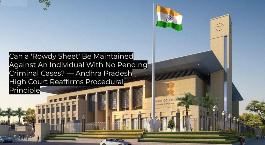 The Andhra Pradesh High Court holds that, in the absence of any pending criminal cases, maintaining a Rowdy Sheet is unwarranted and such sheets must be set aside. The judgment upholds extant procedural safeguards, providing binding authority for individuals similarly placed and clarifying police powers in law and order contexts.