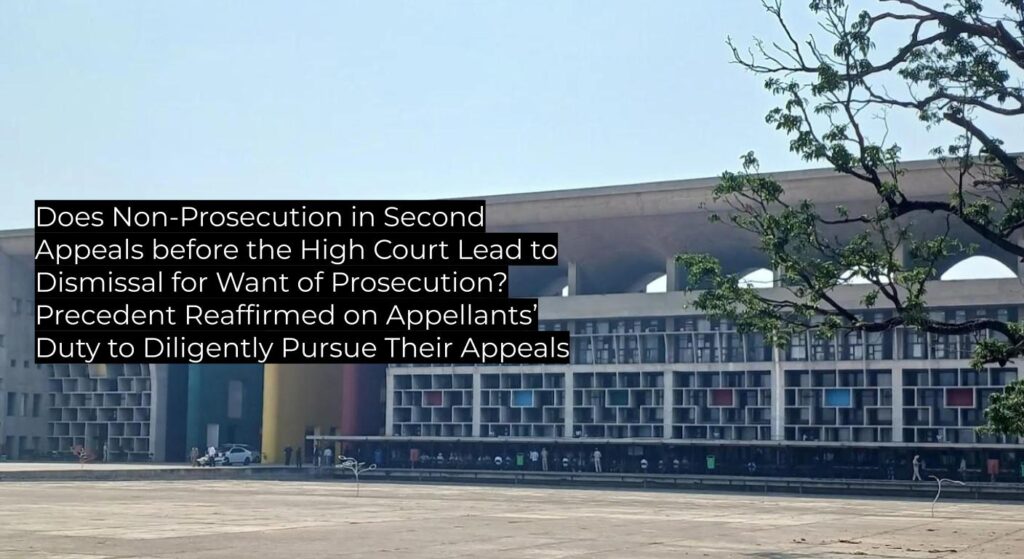 The Punjab and Haryana High Court reaffirms that appellate courts may dismiss second appeals for non-prosecution where appellants repeatedly fail to appear or comply with earlier orders, including deposit of costs. This judgment upholds existing procedural precedent and serves as binding authority for trial and appellate courts in the region regarding dismissal of appeals for want of prosecution.