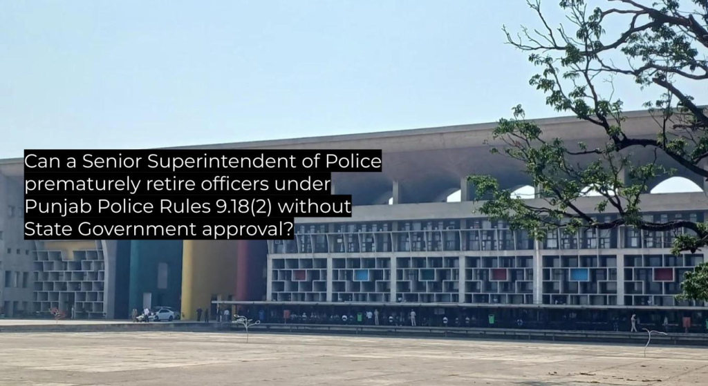 The High Court of Punjab and Haryana held that only an Inspector General of Police, with prior sanction of the State Government, can invoke Rule 9.18(2) PPR to retire officers after ten years’ service, setting aside SSP orders for lack of competence and procedural fairness and reaffirming mandatory approval and hearing requirements.