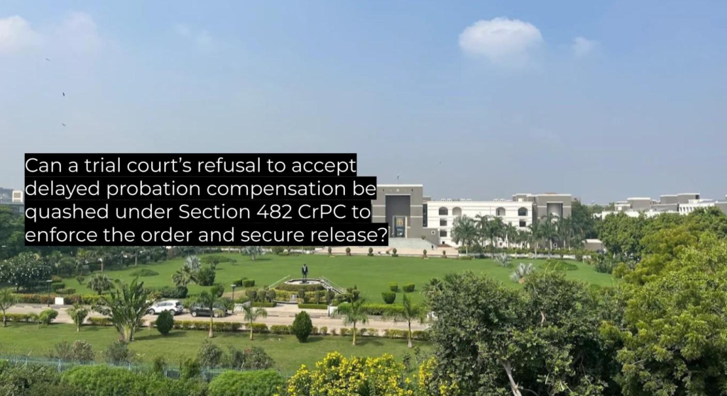 | Ratio Decidendi | The High Court held that refusal to accept compensation deposit beyond the prescribed period under a probation order constitutes an abuse of process and falls within its supervisory jurisdiction under Section 482 CrPC. The Court may quash such refusal to enforce compliance with its order, direct the trial court to accept the deposit, and secure the accused’s release if no other custody is required. This exercise of inherent power prevents injustice where the accused remains willing to fulfill the compensatory condition. |