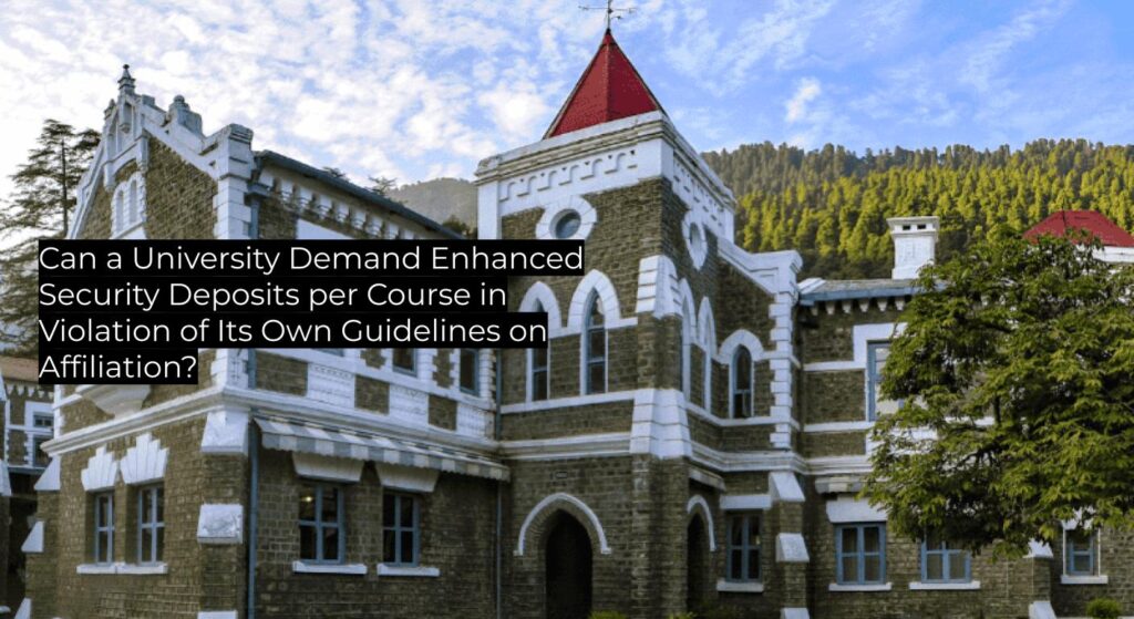 The High Court held that the imposition of ₹15,00,000 per course as a security deposit by Kumaon University, contrary to the University’s existing guidelines, is arbitrary and cannot be sustained. The decision affirms an earlier Division Bench judgment, solidifying the binding nature of prescribed affiliation norms. This ruling serves as binding authority for similar cases involving university affiliation disputes within Uttarakhand.