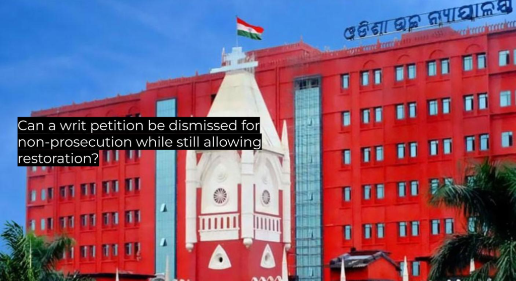 | Ratio Decidendi | The petition was dismissed for non-prosecution on account of the petitioner’s non-appearance; liberty was granted to file a restoration application within one month if any cause of action survives. |