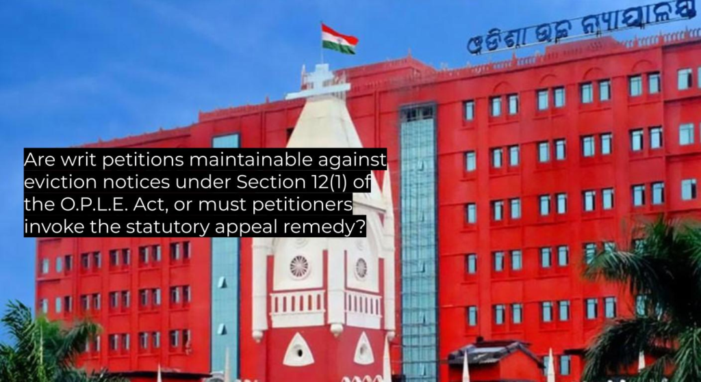 | Questions of Law | Whether a writ petition is maintainable in the presence of a statutory remedy of appeal under Section 12(1) of the O.P.L.E. Act? |