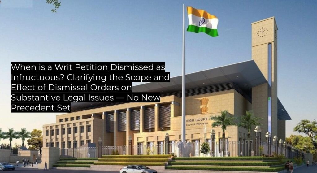 The court reaffirmed that when a writ petition becomes infructuous prior to adjudication, it must be dismissed as such without any determination on merits. This judgment upholds well-settled judicial procedure and serves as binding authority within Andhra Pradesh, clarifying the approach when cases become moot during pendency.