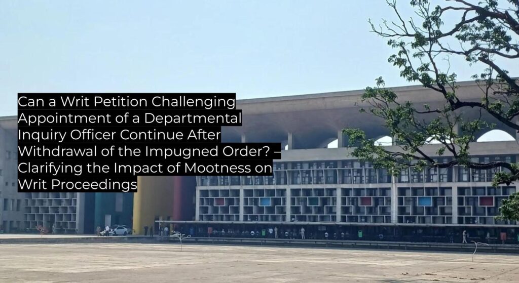 | Questions of Law | Whether a writ petition challenging a departmental inquiry officer’s appointment survives after withdrawal of the impugned order. |