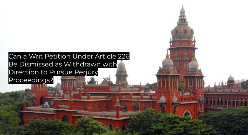 The Madras High Court reaffirms procedural norms by allowing withdrawal of a writ petition with endorsement and directing petitioners to seek remedy via an application for perjury, serving as binding High Court authority on similar withdrawals.