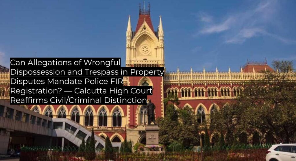 The Calcutta High Court clarifies that mere allegations of wrongful dispossession and trespass relating to immovable property, when presented as private disputes between individuals, do not automatically warrant mandatory FIR registration by police authorities unless the complaint discloses a cognizable offence; reaffirms established precedent distinguishing civil disputes from criminal liability. Serves as binding authority for writ petitions seeking police intervention in property matters.