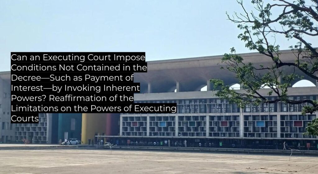 The High Court of Punjab and Haryana has unequivocally held that an Executing Court cannot travel beyond the terms of the decree to impose new conditions such as interest payments, even by invoking its inherent powers under Section 151 CPC. This ruling upholds the binding precedent of the Supreme Court and acts as binding authority for subordinate courts, reaffirming the strict limitation on the jurisdiction of Executing Courts in execution proceedings.