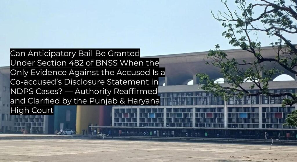 Can Anticipatory Bail Be Granted Under Section 482 of BNSS When the Only Evidence Against the Accused Is a Co-accused’s Disclosure Statement in NDPS Cases? — Authority Reaffirmed and Clarified by the Punjab & Haryana High Court