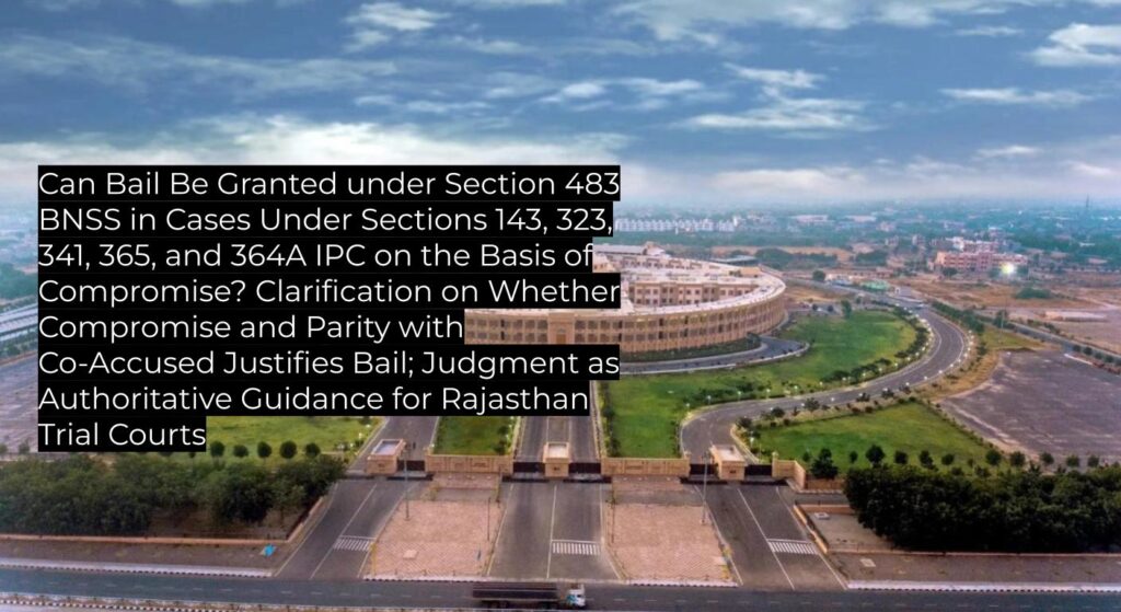 The Rajasthan High Court reaffirmed that bail can be granted under Section 483 BNSS, considering parity with co-accused and the existence of compromise between parties, even where serious sections like 364A IPC are invoked, provided the complainant has no objection. This judgment upholds earlier bail precedent and provides practical guidance for subordinate courts in Rajasthan.