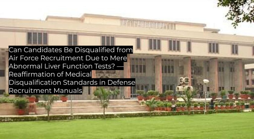 The petitioner, Shivam Pal, was disqualified from applying for Air Force recruitment (Agniveervayu Intake 01/2026) due to deranged liver function. The applicable standards in the Medical Examinations and Medical Boards Manual were examined, revealing that only certain enumerated liver conditions expressly disqualify a candidate. The petitioner’s disqualification was not shown to fit any of those categories, prompting the High Court to direct a fresh medical assessment.
