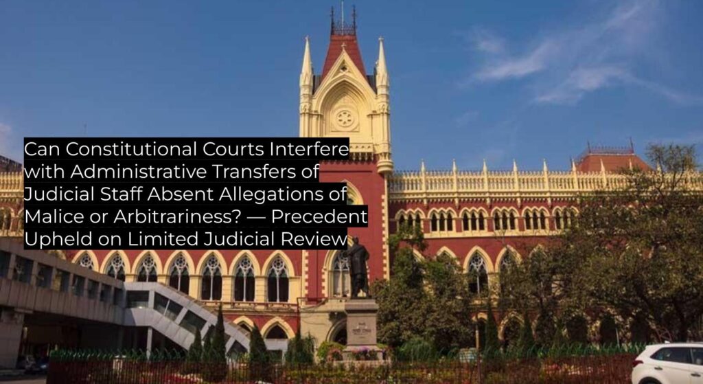 The petitioner was serving as a Stenographer with the district judiciary. He was transferred from Alipore to Kakdwip in February 2025 through an administrative order. In August 2025, he sought another intra-district transfer, which was declined by the Registrar (Judicial Service), citing performance and administrative reasons. The petitioner argued that other colleagues in similar circumstances were re-transferred, but had not challenged those transfers.