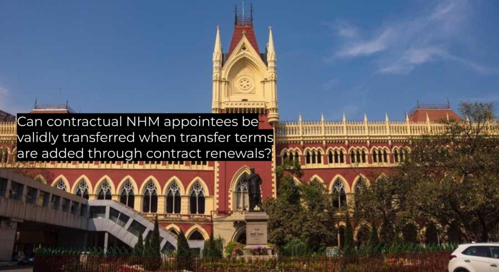 Does a transfer clause incorporated in successive renewals of a purely contractual appointment under the National Health Mission bind the appointee, and are NHM transfer guidelines merely indicative? Calcutta High Court affirms that contractual autonomy governs transfers, distinguishes advisory nature of NHM Guidelines, and provides binding authority for High Court and subordinate courts.