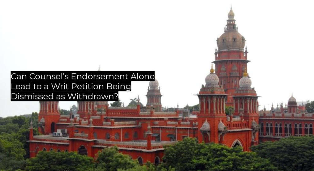 - The petitioner’s counsel applied for withdrawal of the writ petition and filed an endorsement to that effect.