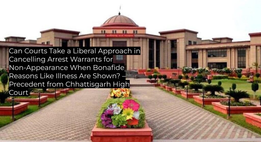 The Chhattisgarh High Court has clarified that where an accused demonstrates bonafide reasons such as illness for failing to appear before the court, and has previously complied with court attendance, courts should adopt a more liberal stance in considering applications for cancellation of arrest warrants. This judgment upholds a flexible approach, reaffirming the need for context-sensitive judicial discretion, and serves as binding authority within Chhattisgarh, with persuasive value elsewhere.