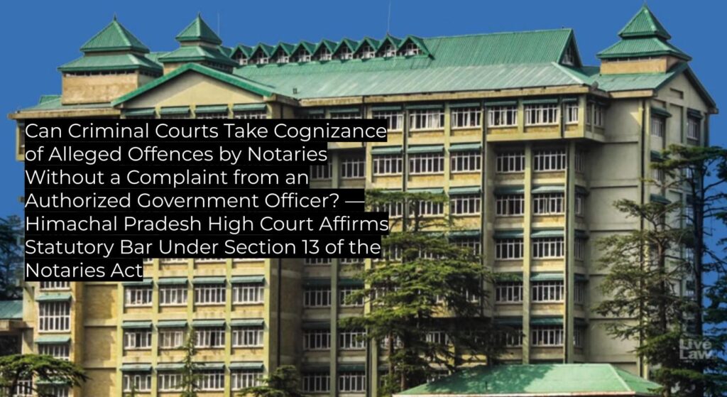 Can Criminal Courts Take Cognizance of Alleged Offences by Notaries Without a Complaint from an Authorized Government Officer? — Himachal Pradesh High Court Affirms Statutory Bar Under Section 13 of the Notaries Act
