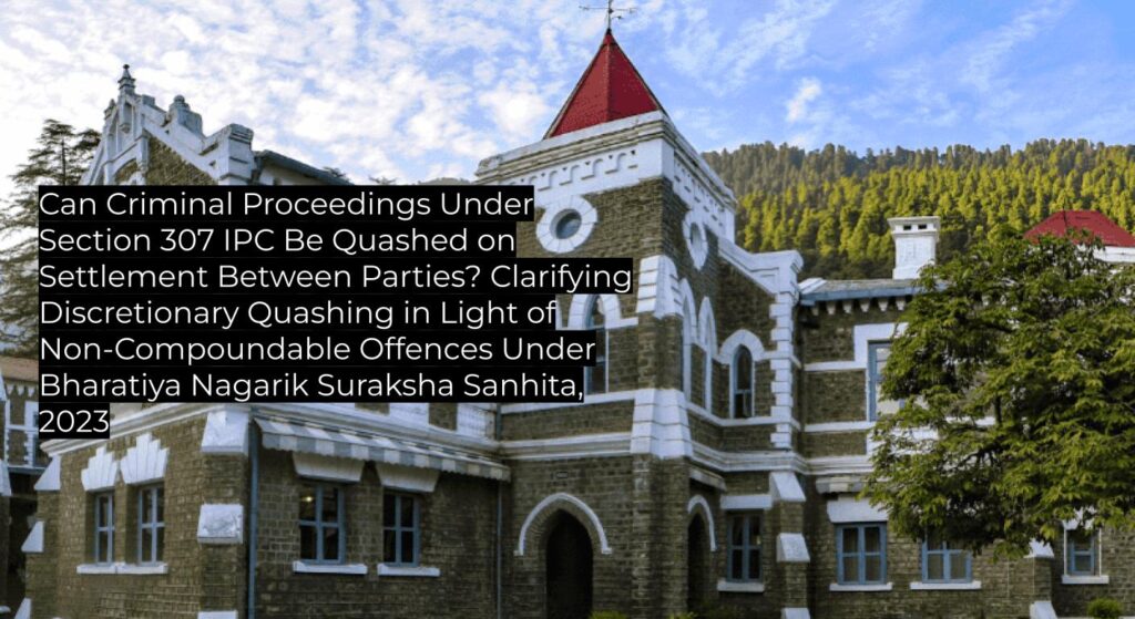 Can Criminal Proceedings Under Section 307 IPC Be Quashed on Settlement Between Parties? Clarifying Discretionary Quashing in Light of Non-Compoundable Offences Under Bharatiya Nagarik Suraksha Sanhita, 2023