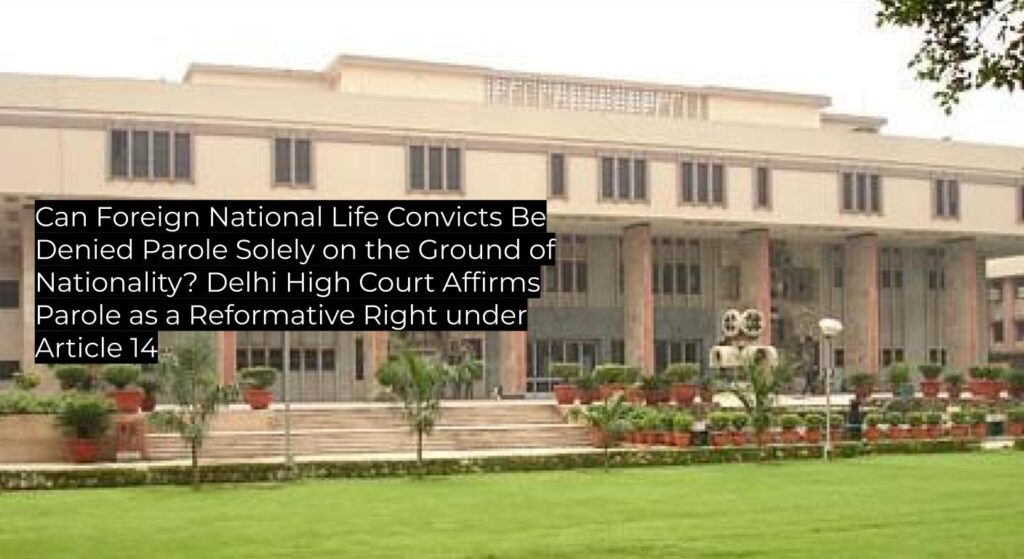 Delhi High Court clarifies that foreign nationals cannot be deprived of parole on grounds of nationality alone if other eligibility conditions are met; affirms parity in parole rights under Article 14 and interprets Delhi Prison Rules, 2018 to require a case-by-case assessment. The ruling upholds existing legal principles and provides binding authority within Delhi’s jurisdiction for parole applications by foreign national convicts.
